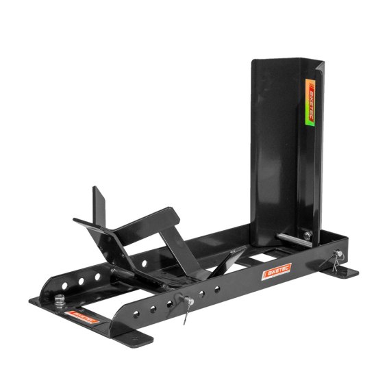 • BIKETEC UNIWERSALNY STOJAK BEZ RAMION Z UCHWYTEM PRZEDNIEGO KOŁA Z KOŁYSKĄ DO TRANSPORTU MOTOCYKLA WHEEL CHOCK KOLOR CZARNY STAL