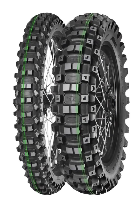 DOMINUJ NA KAŻDYM TERENIE Z MITAS TERRA FORCE-EX MH ! Opona MITAS TERRA FORCE-EX MH została specjalnie zaprojektowana, aby sprostać wymaganiom najbardziej wymagających użytkowników, oferując najlepsze osiągi, stabilność i odporność na zużycie zarówno w warunkach wilgotnych, jak i suchych. ZALETY MITAS TERRA FORCE-EX MH : - Doskonała trakcja i kontrola - opona TERRA FORCE-EX MH oferuje ulepszony bieżnik, osnowę i profil. Szeroko rozstawione kostki o agresywnej konstrukcji (~17 mm) nadają oponie doskonałą trakcję i kontrolę na średnim i twardym, ubitym podłożu. - Ułatwione przyspieszenie - kostki boczne opony motocyklowej o haczykowatym przekroju ułatwiają przyspieszanie, zapewniając pewność podczas pokonywania zakrętów. - Stabilność jazdy - wzmacniana osnowa i elastyczna ściana boczna umożliwiają skuteczne pochłanianie uderzeń, jednocześnie gwarantując maksymalną trakcję i stabilność kierunkową . MITAS TERRA FORCE-EX MH to opona , która doskonale sprawdzi się w różnorodnych warunkach terenowych. - Dostępność w trzech wersjach - Super (Fast Enduro), Super Light (Technical Enduro) oraz Super Soft (Extreme Enduro) - Terra Force-EX MH jest dedykowana motocyklom klasy Enduro i Dual-Sports, w tym również Junior Enduro. Super (Fast Enduro) - żółty pas: średnia osnowa i mieszanka, idealna do szybkiego enduro, doskonała na twardych i suchych powierzchniach. Super Light (Technical Enduro) - zielony pas: lekka, miękka konstrukcja osnowy i gumowata mieszanka, doskonała do technicznego enduro, idealna na mokrych i śliskich powierzchniach. Super Soft (Extreme Enduro) - podwójny zielony pas: lekka konstrukcja osnowy i ultragumowata mieszanka, stworzona do wolnego, ekstremalnego enduro, idealna na mokrych i śliskich powierzchniach. Opona motocyklowa MITAS TERRA FORCE-EX MH to niekwestionowany lider w świecie Enduro i Cross. Opona została stworzona z myślą o ekstremalnych warunkach na powierzchniach średnich i twardych, oferując nieprzemijające osiągi, doskonałą stabilność i nadzwyczajną odporność na zużycie. Wybierz MITAS TERRA FORCE-EX MH, jeśli szukasz opony, która dostarczy wyjątkowych osiągów i nie zawiedzie nawet w najbardziej wymagających warunkach!