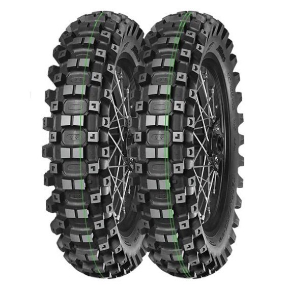 DOMINUJ NA KAŻDYM TERENIE Z MITAS TERRA FORCE-EX MH ! Opona MITAS TERRA FORCE-EX MH została specjalnie zaprojektowana, aby sprostać wymaganiom najbardziej wymagających użytkowników, oferując najlepsze osiągi, stabilność i odporność na zużycie zarówno w warunkach wilgotnych, jak i suchych. ZALETY MITAS TERRA FORCE-EX MH : - Doskonała trakcja i kontrola - opona TERRA FORCE-EX MH oferuje ulepszony bieżnik, osnowę i profil. Szeroko rozstawione kostki o agresywnej konstrukcji (~17 mm) nadają oponie doskonałą trakcję i kontrolę na średnim i twardym, ubitym podłożu. - Ułatwione przyspieszenie - kostki boczne opony motocyklowej o haczykowatym przekroju ułatwiają przyspieszanie, zapewniając pewność podczas pokonywania zakrętów. - Stabilność jazdy - wzmacniana osnowa i elastyczna ściana boczna umożliwiają skuteczne pochłanianie uderzeń, jednocześnie gwarantując maksymalną trakcję i stabilność kierunkową . MITAS TERRA FORCE-EX MH to opona , która doskonale sprawdzi się w różnorodnych warunkach terenowych. - Dostępność w trzech wersjach - Super (Fast Enduro), Super Light (Technical Enduro) oraz Super Soft (Extreme Enduro) - Terra Force-EX MH jest dedykowana motocyklom klasy Enduro i Dual-Sports, w tym również Junior Enduro. Super (Fast Enduro) - żółty pas: średnia osnowa i mieszanka, idealna do szybkiego enduro, doskonała na twardych i suchych powierzchniach. Super Light (Technical Enduro) - zielony pas: lekka, miękka konstrukcja osnowy i gumowata mieszanka, doskonała do technicznego enduro, idealna na mokrych i śliskich powierzchniach. Super Soft (Extreme Enduro) - podwójny zielony pas: lekka konstrukcja osnowy i ultragumowata mieszanka, stworzona do wolnego, ekstremalnego enduro, idealna na mokrych i śliskich powierzchniach. Opona motocyklowa MITAS TERRA FORCE-EX MH to niekwestionowany lider w świecie Enduro i Cross. Opona została stworzona z myślą o ekstremalnych warunkach na powierzchniach średnich i twardych, oferując nieprzemijające osiągi, doskonałą stabilność i nadzwyczajną odporność na zużycie. Wybierz MITAS TERRA FORCE-EX MH, jeśli szukasz opony, która dostarczy wyjątkowych osiągów i nie zawiedzie nawet w najbardziej wymagających warunkach!