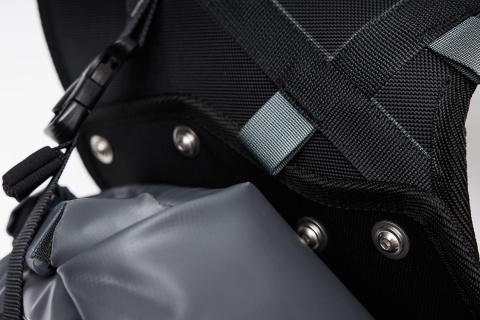 - Boczne kieszenie transportowe regulowane bocznym paskiem idealny sposób do szybkiego i lekkiego montażu sakw